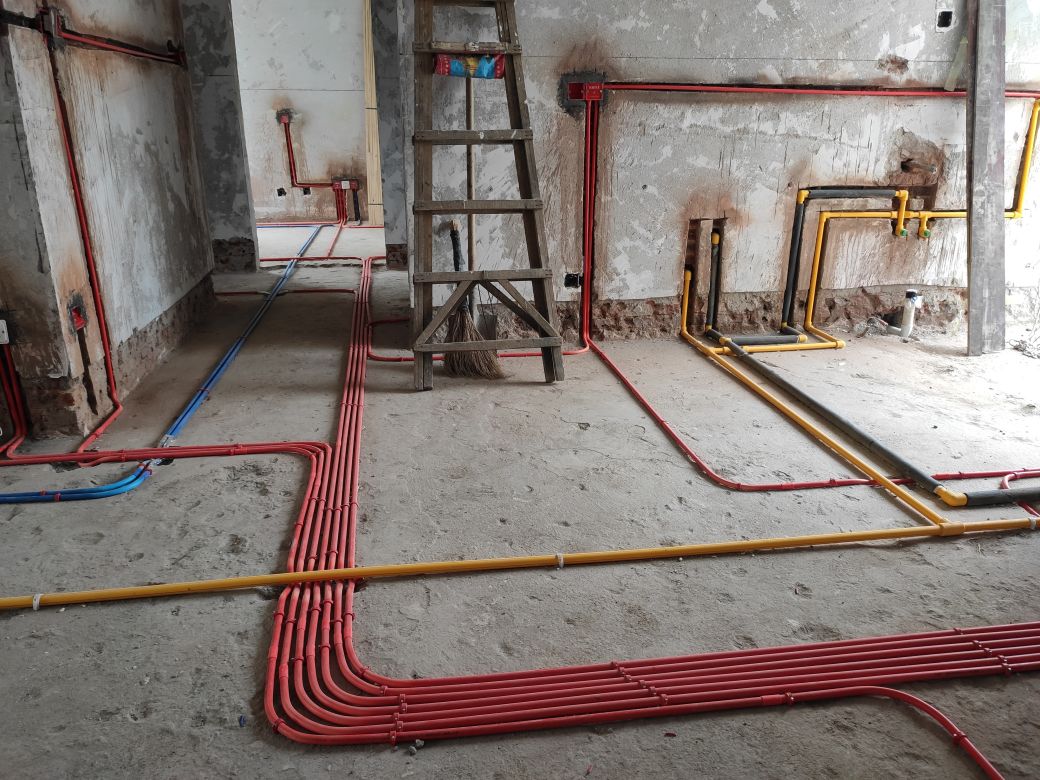 4、之后就進(jìn)行水路改造,水路改造時(shí)需要先研究一下房間下水管的大小,然后進(jìn)行接管的時(shí)候,要與原下水管匹配。冷熱水管之間要保持一定的距離,不能小于20厘米左右。