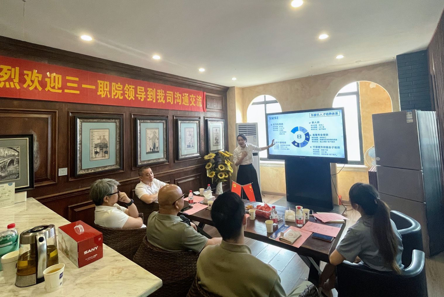 校方領(lǐng)導(dǎo):學(xué)院辦學(xué)理念是希望學(xué)生學(xué)會(huì)畫(huà)效果圖、畫(huà)施工圖、培養(yǎng)出營(yíng)銷人員、進(jìn)入施工現(xiàn)場(chǎng)學(xué)習(xí)、學(xué)預(yù)算;需要企業(yè)與學(xué)校雙方進(jìn)行綜合培訓(xùn),加強(qiáng)學(xué)生的生活經(jīng)驗(yàn),和了解企業(yè)的規(guī)范等。本次來(lái)東家樂(lè)進(jìn)行訂單班溝通交流,主要想把三一職院和東家樂(lè)的優(yōu)勢(shì)進(jìn)行結(jié)合。在交流溝通階段,安教授、黃教授就響應(yīng)國(guó)家政策號(hào)召的職業(yè)技術(shù)教育與東家樂(lè)技術(shù)性訂單班的合作進(jìn)行深入溝通和探討,并對(duì)后續(xù)的發(fā)展前景進(jìn)行展望。東家樂(lè)董事長(zhǎng)表示,職業(yè)技術(shù)教育強(qiáng)調(diào)動(dòng)手和實(shí)操能力,與我們后端交付儲(chǔ)備人才很匹配,后續(xù)深入合作為企業(yè)后端交付、甚至為行業(yè)都非常有意義。