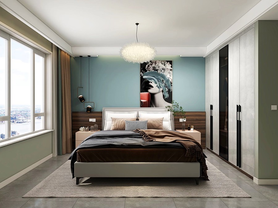 4)在充滿時尚和簡約的現(xiàn)代環(huán)境中,使用優(yōu)雅高貴的藍色來調(diào)整氛圍,同時展現(xiàn)出典雅迷人的風(fēng)情,讓家居擁有與眾不同的個性。