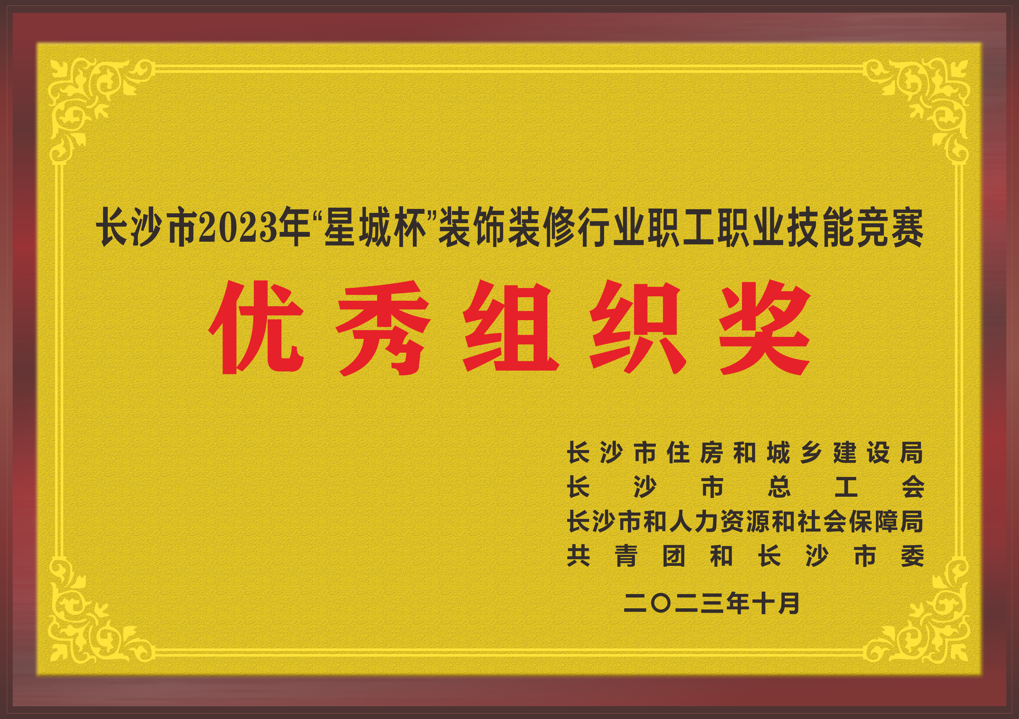 長沙市2023年“星城杯”裝飾裝修行業(yè)職工職業(yè)技能競賽中榮獲優(yōu)秀組織獎(jiǎng)和重大活動(dòng)支持先進(jìn)單位