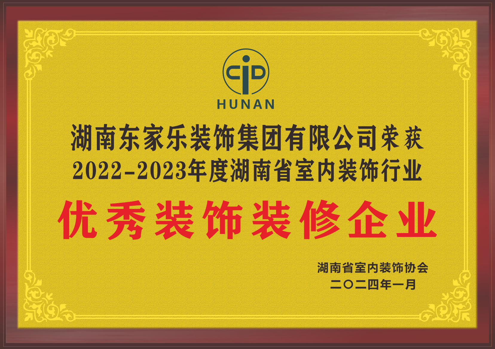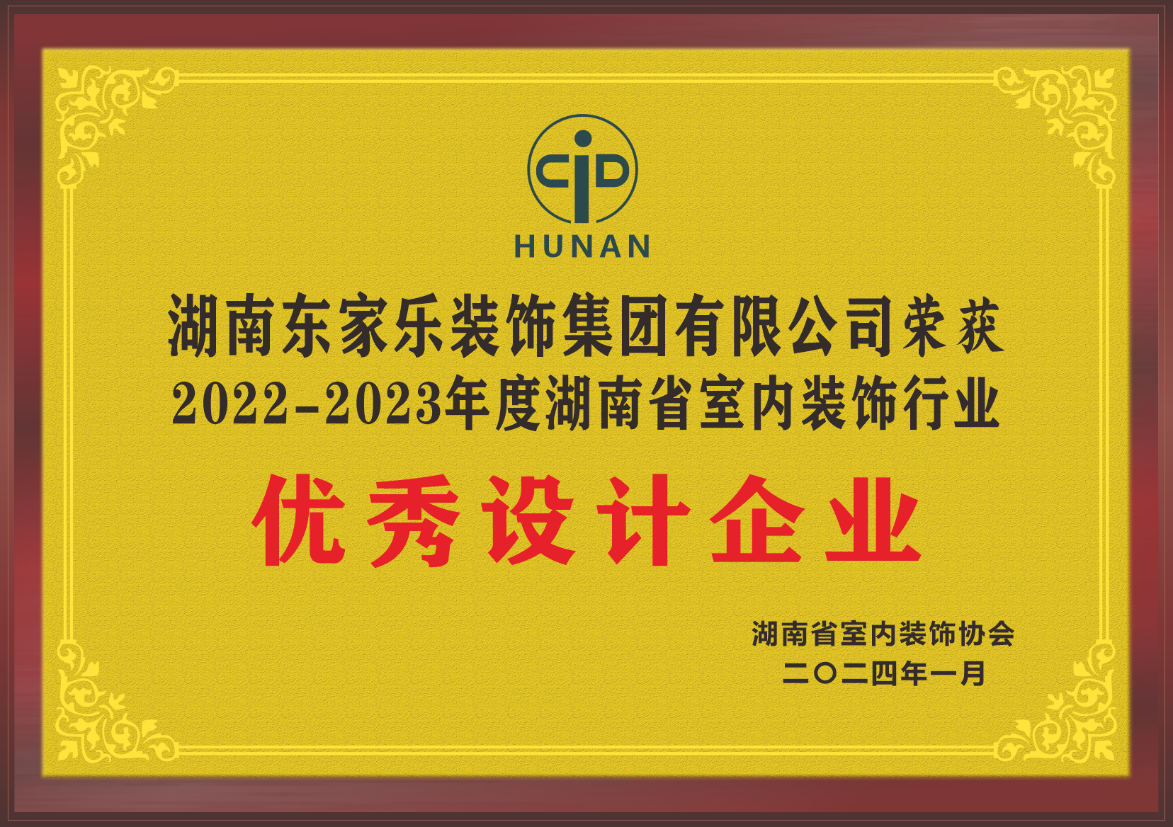 榮獲2023年度湖南省室內(nèi)裝飾行業(yè)優(yōu)秀裝飾裝修企業(yè)