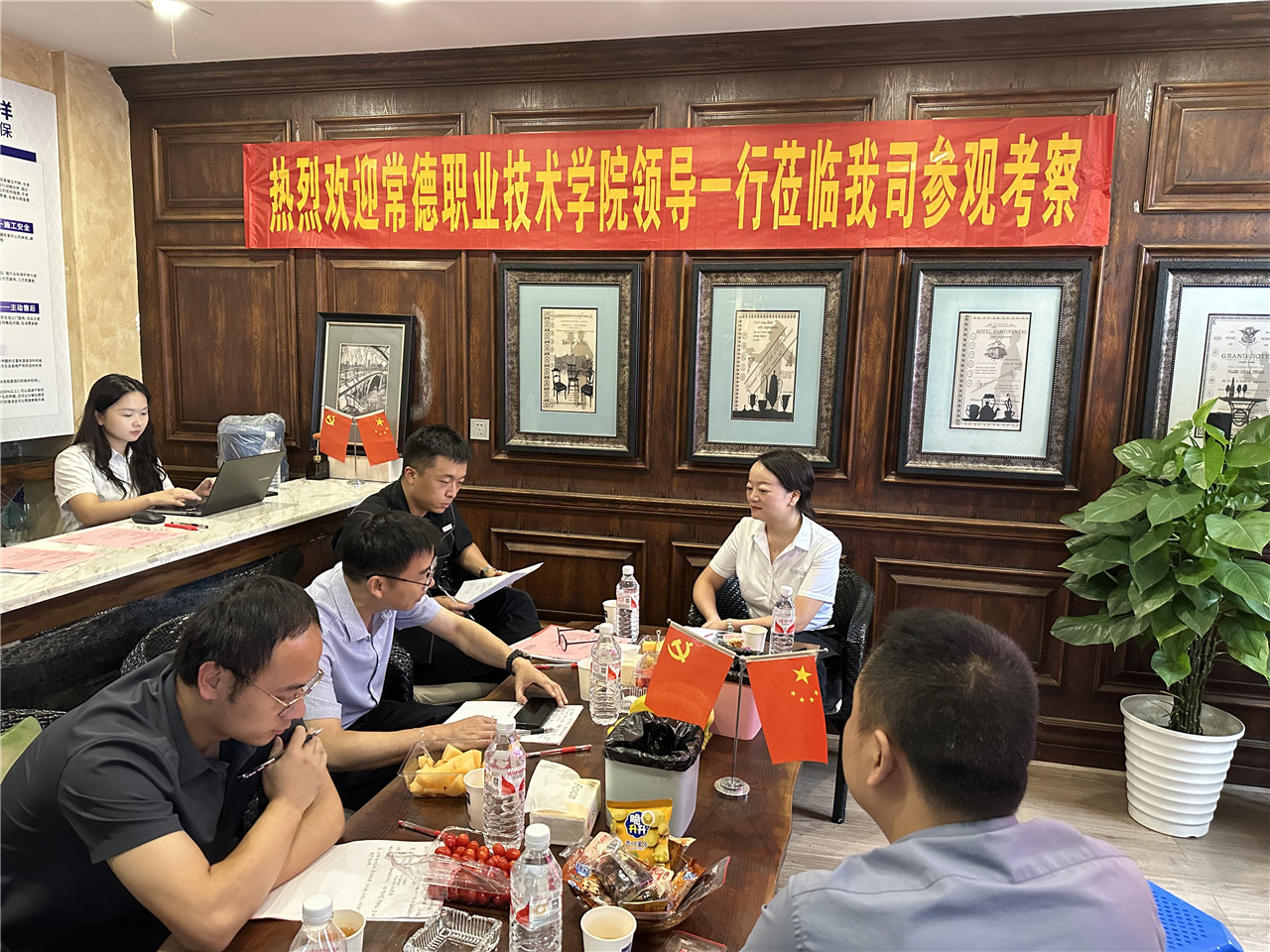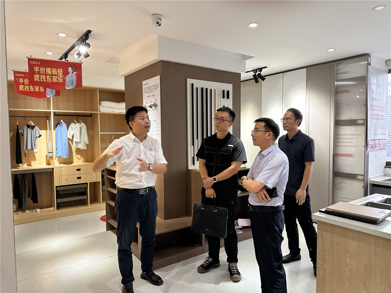 校方領(lǐng)導(dǎo)到達(dá)后,李君總帶領(lǐng)參觀公司展廳、辦公場地和設(shè)計案例等。其中,優(yōu)秀實(shí)習(xí)生陪同參觀這一環(huán)節(jié)成為亮點(diǎn),讓學(xué)校一行對東家樂集團(tuán)有了更深入的了解。