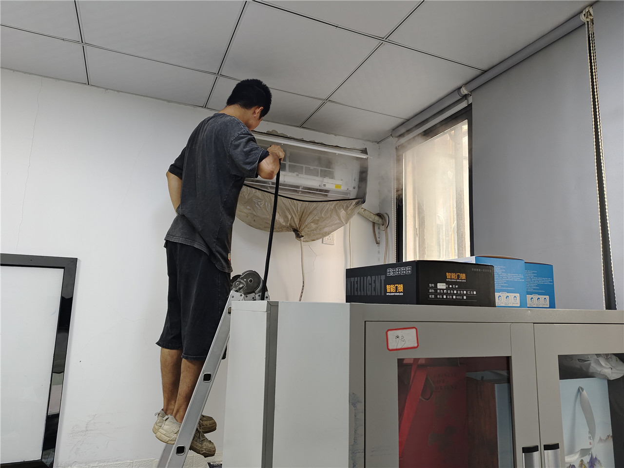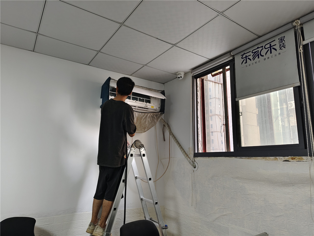 2024年9月26日下午,東家樂家裝集團總部進行空調(diào)清洗工作。
