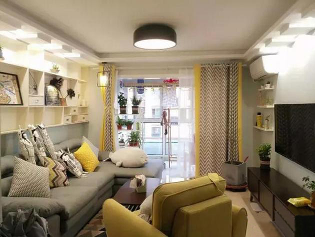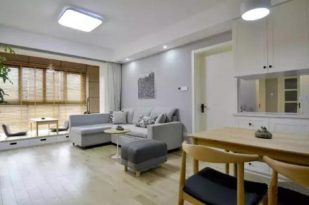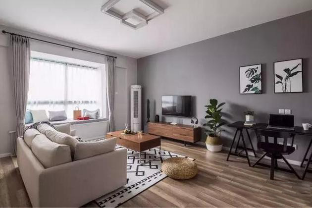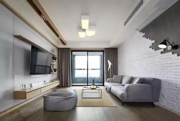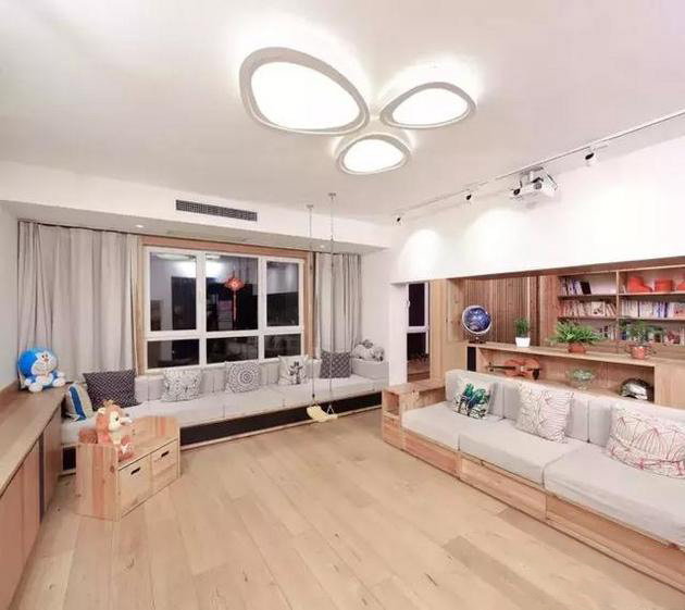 當(dāng)然,客廳的設(shè)計(jì)還可以選擇不要茶幾,將沙發(fā)與飄窗結(jié)合在一起,中間部分留空,這樣客廳的中間就會(huì)非常寬敞,家里有小孩也有足夠的玩耍空間。