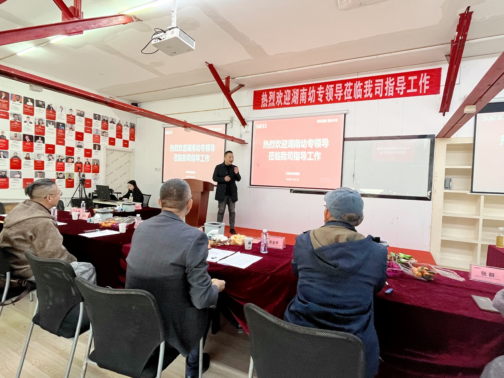 緊接著,袁家?guī)X副總李君總通過 PPT 宣講的形式,進一步詳細介紹了東家樂的業(yè)務架構(gòu)、發(fā)展規(guī)劃以及在人才培養(yǎng)方面的創(chuàng)新舉措與顯著成效,使湖南幼專的領導們深入了解了企業(yè)的核心競爭力與人才需求導向。
