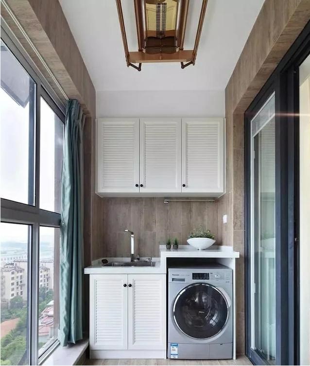 2、窗簾裝在外面陽(yáng)臺(tái),紗簾在推拉門這一側(cè)