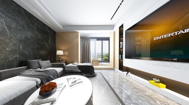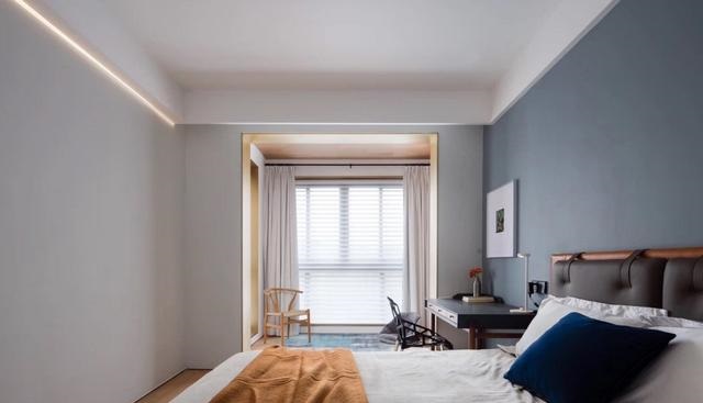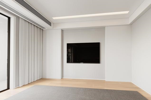 這個就是極簡風格,四周簡單的圍了一圈,只是靠窗簾這邊,要安裝嵌入式空調,做了一個下沉的空間。