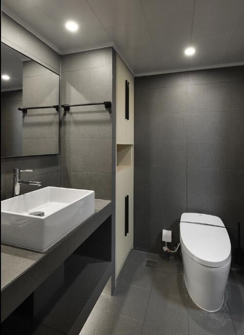 也就是說腰線也并不是非貼不可的!如果衛(wèi)生間面積過小,還是要建議不要貼腰線。因?yàn)檫@樣會(huì)在視覺上縮小空間,而且也給人帶來約束感,倒不如光潔的墻面來得整潔大方。所以上下墻深淺色才必須要用腰線過渡,而如果整面墻都是一種顏色的話,用腰線就有點(diǎn)畫蛇添足了。