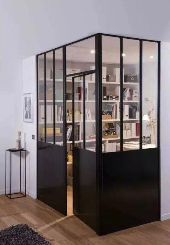 書房和客廳之間的隔墻也是設(shè)置內(nèi)窗的好地方,不僅可以使客廳更加有開放性,還可以增加采光和通風,使空間不那么悶。