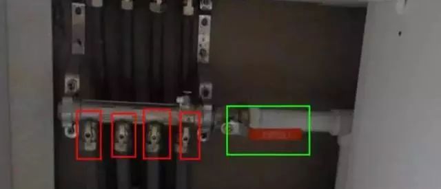 3、圖中綠線框起來的是出水管總閥,紅線框起來的是分水管的小水閥。正常放水的狀態(tài)是總閥與出水管平行,小水閥與出水管垂直。