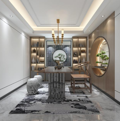 在簡約的基礎(chǔ)上添加了一些中式的元素,不管是會友還是自酌都十分的有意境。沏一壺茶,煮一杯酒,這樣的生活真令人向往。