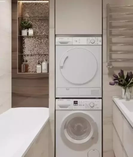 如果想在衛(wèi)生間擺放洗衣機(jī),可以采用嵌入式設(shè)計,不占空間,整體性強(qiáng),看著整潔大方,廚房空間最常用的方式;