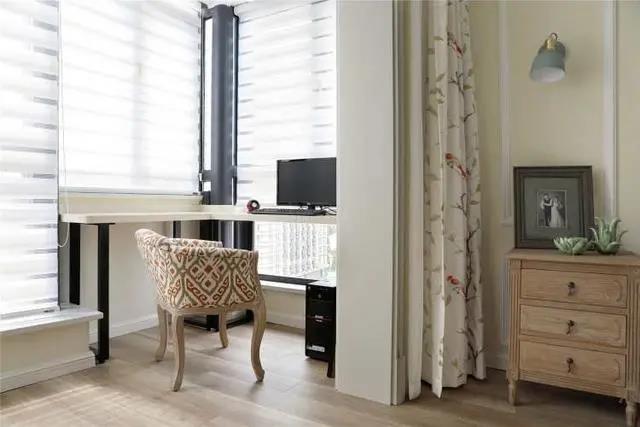 臥室兩側(cè)空間也沒浪費(fèi),靠近床頭一側(cè)打造成簡易書房,居家辦公夠用了,需要獨(dú)立的空間,將窗簾拉上就可以了,靈活又實(shí)用。另一側(cè)做了個(gè)儲(chǔ)物柜,提高臥室收納保持空間整潔。簡易光滑的柜門,搭配黑色長條門把手,耐看極了。