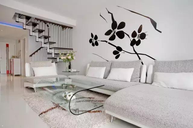 ▲客廳背景墻使用墻貼裝飾,想換就換,也不貴。