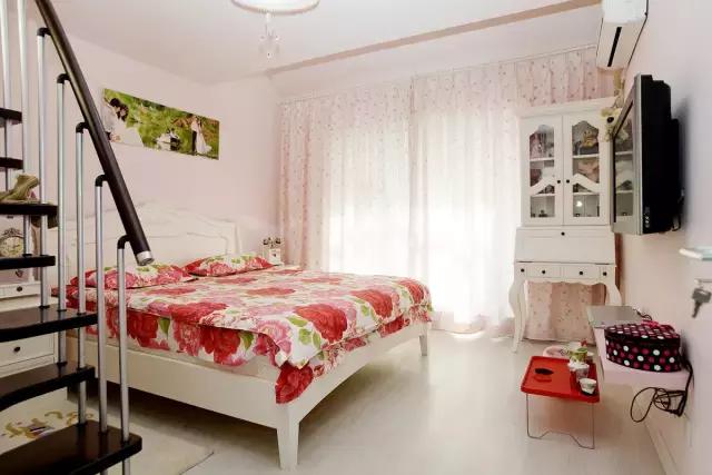 ▲臥室的設計更加溫馨,玫瑰床單的浪漫,可隱藏梳妝臺的機智。