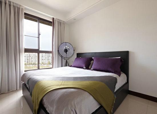 臥房是屬于私人的領(lǐng)地,大家可以根據(jù)自己的需要和喜歡來進行布置。圖中這款臥房的布置非常的簡單,白色的墻面搭配白色的地板,顯得很亮堂。臥房內(nèi)家具很少,黑色的實木床上鋪著銀灰色的床單,紫色的抱枕,顯得很雅致。