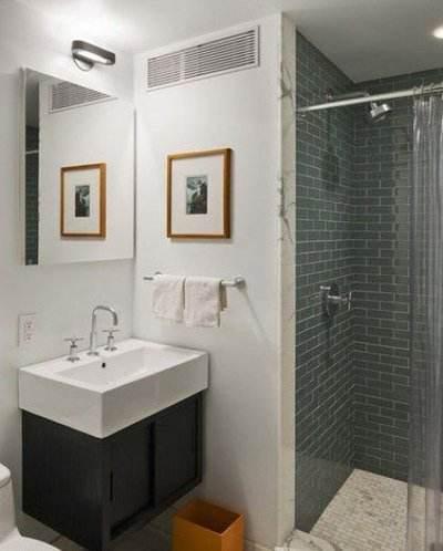衛(wèi)生間的設(shè)計非常簡單,綠色瓷磚的設(shè)計不但好看,而且還能增加空間的層次感和立體感。浴簾的設(shè)計,將空間分成干濕2個區(qū)域,在視覺上更明顯也更美觀。